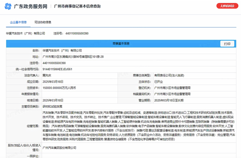 3月18日,由广汽集团投资设立的新公司华望汽车技术(广州)有限公司(以下简称“华望汽车”)正式成立,全新高端智能汽车品牌也将在不久公布。这是广汽集团在智能汽车生态及高端品牌方面的进一步布局,也是GH项目最新进展。